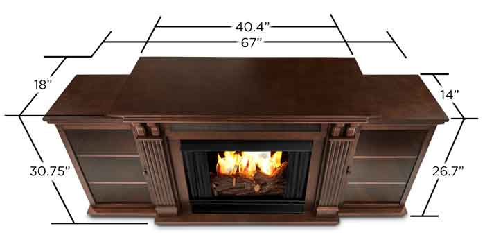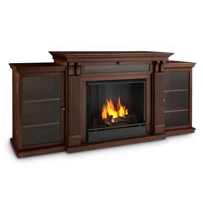 Based on a bestselling favorite, this Callie Entertainment Gel Fireplace Mantel in Dark Espresso features ample storage thanks to a drop down