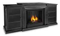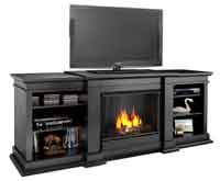 Fresno Media Center Gel Fireplace in Black. The Fresno ventless fireplace by Real Flame is an ideal choice for almost any decor. Model G1200 comes in portable and hassle-free gel fuel design with no smoke, soot, or ashes. This unit comes complete with mantel, firebox, hand-painted cast concrete log, and screen. This Fresno ventless fireplace lets you enjoy the warmth and ambiance of a real fire.